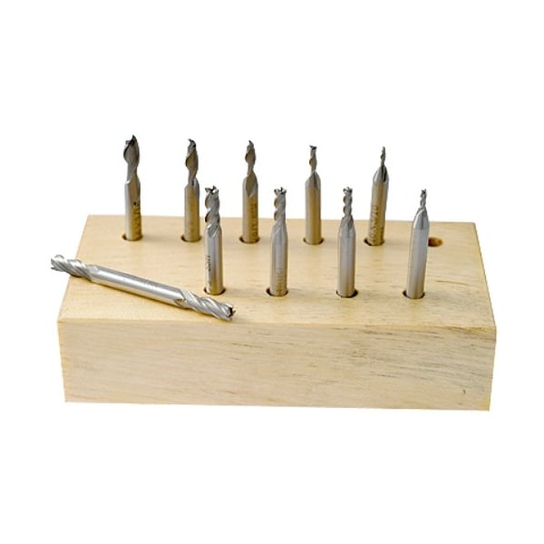 10 Piece 2 & 4 Flute Mini High Speed Steel Double End Mill Set