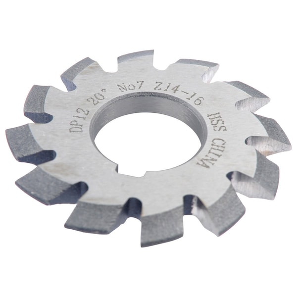 HHIP Cutter diameter is 258 Arbor hole is 1 Made from high speed steel Ground from solid Bright finish Straight teeth on periphery of cutters For spur gears with 145 degrees 20 degrees Involute gear cutters make it possible to machine gears on your CNC or manual mill The gear cutter is made into the involute profile which transfers it's shape to your gear blank allowing it to run with other gears The gear cutter needs to be matched to your gear specifications including diametral pitch or module, pressure angle and the number of teeth it will cut The profile of all involute spur gears changes slightly as the tooth count changes and so the profile of the gear cutter changes as well Cutters are numbered from 18 depending on how many teeth it will cut