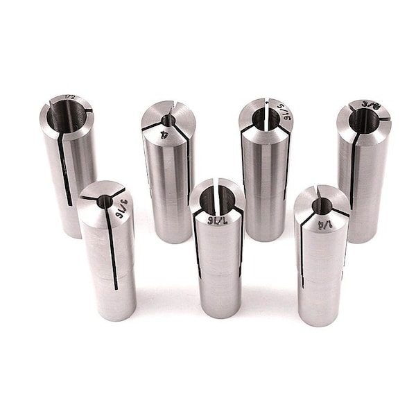 1/8 to 1/2 in (By 16ths) MT2 7 Piece Round Collet Set