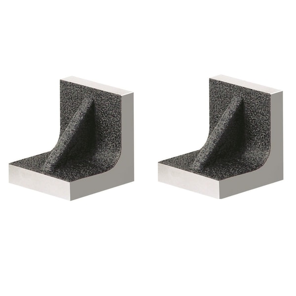 HHIP 2 Piece 2 X 2 X 2in Solid Cast Iron Angle Plates Matched Pair HHIP solid cast iron angle plates 2 X 2 X 2in are a matched pair used for workpiece holding, inspection, and machining setups. Used in milling, grinding, drilling, and layout work for squaring and positioning. Ideal for CMM inspection, tool room setups, and jig/fixture alignment. Can be used as a right-angle reference or to support small workpieces in setups. Made from high-quality cast iron, typically grade 20-25 for durability and stability. Stress-relieved and precision ground to minimize warping over time. Provides 90 Degrees accuracy for precise setup in machining or inspection. Solid, non-slotted design for maximum rigidity. Precision-ground faces for flatness and squareness. 2inOAL x 2inOverall width x 2inOverall height