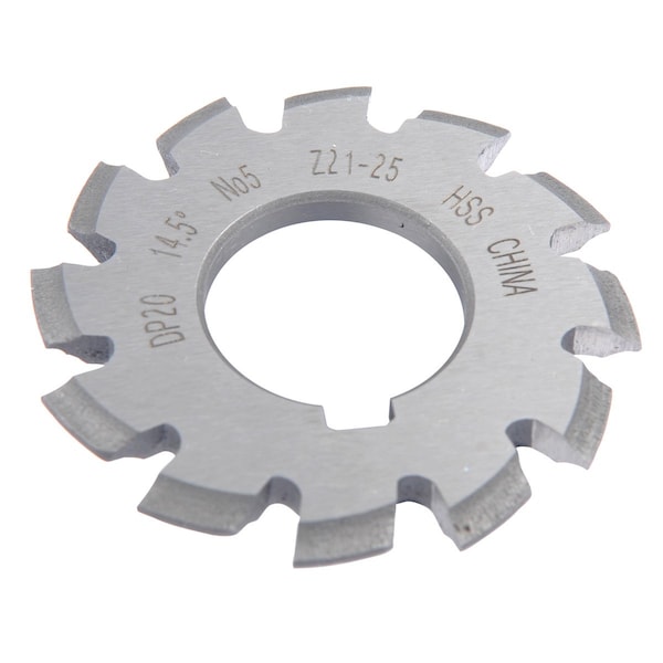 HHIP Cutter diameter is 238 Arbor hole is 1 Made from high speed steel Ground from solid Bright finish Straight teeth on periphery of cutters For spur gears with 145 degrees 20 degrees Involute gear cutters make it possible to machine gears on your CNC or manual mill The gear cutter is made into the involute profile which transfers it's shape to your gear blank allowing it to run with other gears The gear cutter needs to be matched to your gear specifications including diametral pitch or module, pressure angle and the number of teeth it will cut The profile of all involute spur gears changes slightly as the tooth count changes and so the profile of the gear cutter changes as well Cutters are numbered from 18 depending on how many teeth it will cut