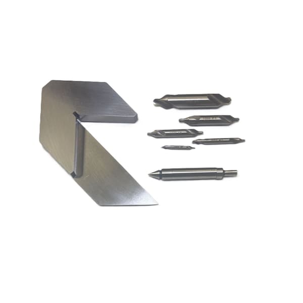 HHIP 3 Piece Machinist Set Center Square, Drill Set, Edge & Center Finder This set includes a 3 in Center Square, an Edge & Center Finder, and a 5 Piece HSS Center Drill Set. The center square rapidly locates the exact center of round, square, and octagonal parts. The edge & center finder has a 3/8 in shank with a 0.200 in tip, is hardened and ground all over and has an accuracy to 0.0002 in. The high speed steel center drills have a 60 degree countersink angle that fits all standard centers, is perfect for centering work ends and includes sizes #1-#5. This is a time-saving kit for layout, centering, and spindle locating - essential for machinists and toolmakers. Everything you need for accurate layout and fast setups in one bundle. Built from precision-ground, hardened tool steel, this set improves accuracy and reduces setup time in machining operations.