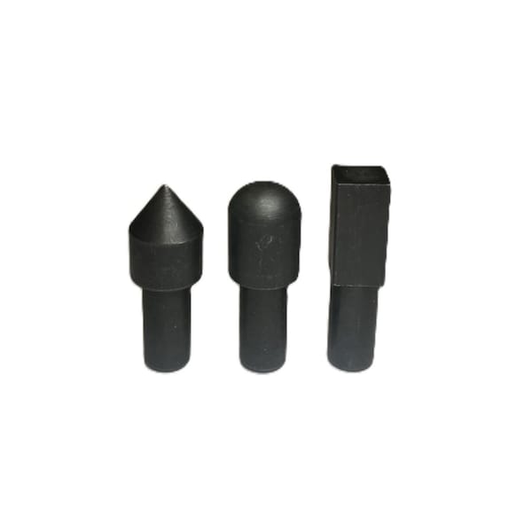 HHIP 3 Piece Pin/Drift Set for Arbor Presses Set includes 1 flat drift, 1 point drift, and 1 round drift all with 3/8in shank and 1-1/2in overall length. The flat drift is designed for even force distribution and is ideal for aligning metal parts and driving out pins. This drift is durable and made for heavy-duty use and helps prevent damage to delicate surfaces. The point drift has a pointed end for precise alignment and pin driving. This drift facilitates the removal of stubborn pins or fasteners. It has a tapered design that enhances control during use and is made from hardened steel for strength and longevity. The round drift has a rounded tip for concentric alignment and is used to drift out bolts or shafts from tight-fitting holes. This drift provides controlled force without causing deformities and is resistant to wear and corrosion. Drifts are securely held in the arbor press ram and are typically secured using the magnetic insert provided in the ram or set screw mechanism. Drifts enable precise and controlled pressing operations and are suitable for aligning, adjusting, or removing components. They also enhance efficiency and safety in industrial applications. They are ideal for automotive workshops, machine shops and manufacturing facilities.