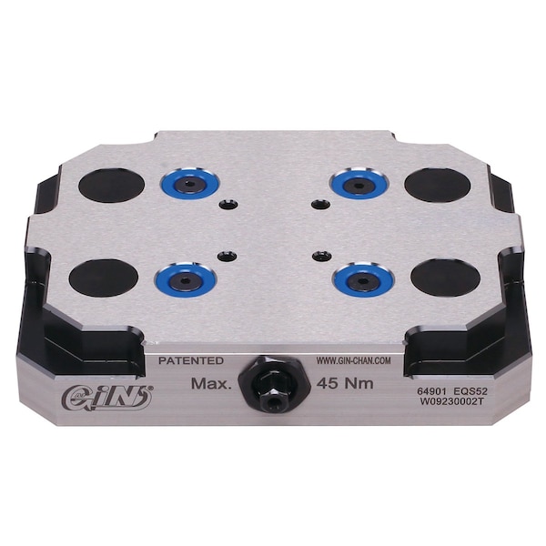 HHIP 52mm Pin Spacing Zero-Point Plate For 5-Axis CNC Vise Made in Taiwan. 150 X 116 X 30mm. Suitable for tombstone on horizontal machining center. High locking force. Made of steel. Maintenance free. Simple, easy to use, mechanical operation. Zero-point system plates are used in machine tool positioning and clamping systems and have many features including repeatability of less than 0.005mm. The system allows for the addition of more plates or the use of different grid dimensions and you can add expansion modules for 5-axis machining.
