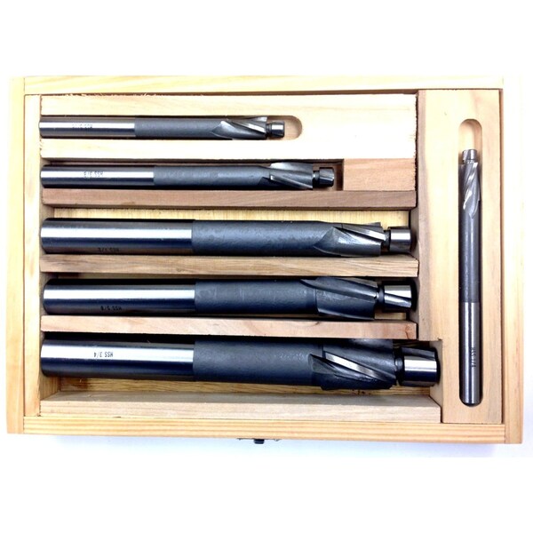 6 Piece High Speed Steel 3 Flute Solid Pilot Counterbore Set