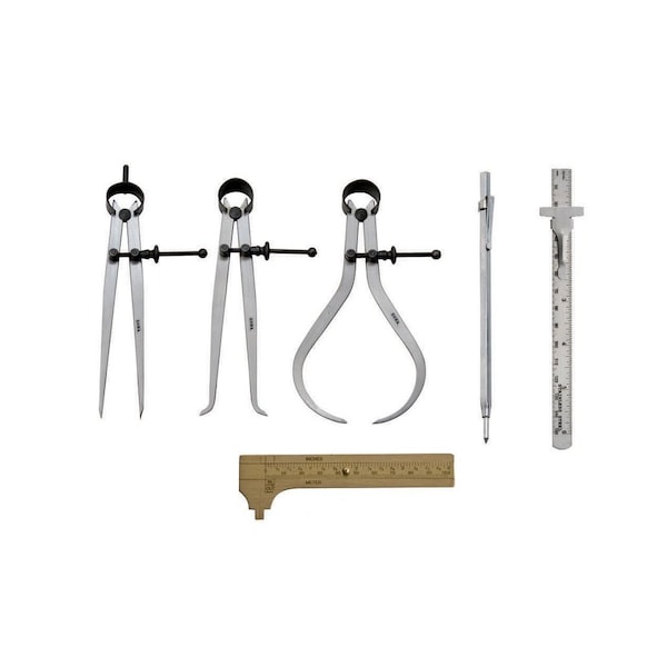6 Piece Spring Calipers, Divider & Rule Measuring Kit
