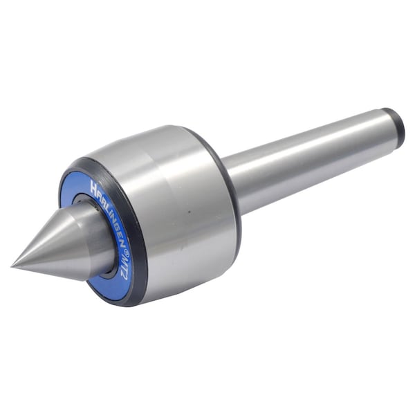 Harlingen MT2 Precision High Speed CNC A-Type Live Center High concentricity and stability thanks to a high accuracy bearing system. The tip has a 60 degree included angle. The body is hardened for extra strength and rigidity. Lifetime lubrication for minimum required maintenance. Maximum concentricity deviation for ultra precision. Point is made of high quality alloy steel that has been heat treated to hardness HRC62.