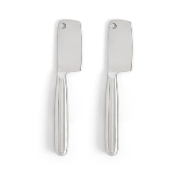 Maison du Fromage's Cheese Cleaver S/2 cuts and cubes blocks of hard cheeses Made with brushed stainless steel; sturdy, durable, won't stain or rust; set of 2; each measures 7.59 x 1.81 x 0.63-inches Ideal for cheddar, Havarti, Swiss, and Colby cheese; hollow handle is lightweight and comfortable Perfectly sized and balanced to prepare and serve beautiful cheese platters and charcuterie boards for every day and entertaining Dishwasher safe for easy cleanup
