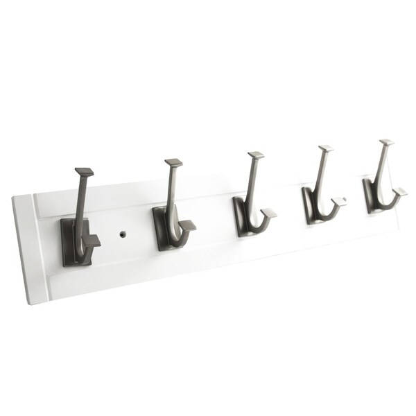 Skylight Collection Coat Rack/Hook Rail 5 Coat and Hat Hooks 27 Inch Long White with Stainless Steel Finish