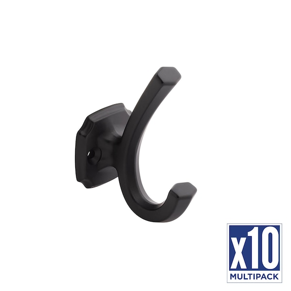Veranda Collection Hook 1 Inch Center to Center Matte Black Finish, 5PK