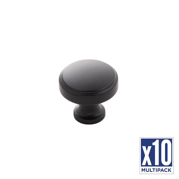 Piper Collection Knob 1-1/4 Inch Diameter Matte Black Finish (10-Pack)
