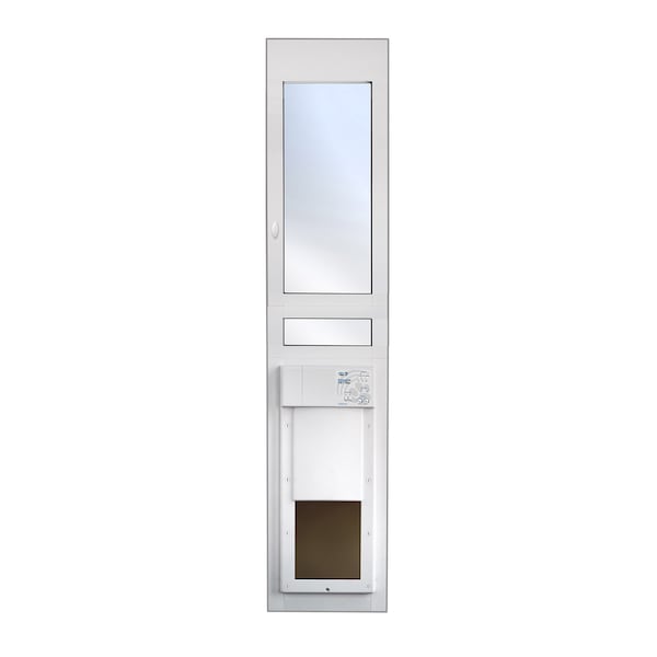 Give your furry friend some freedom while keeping all others out with the High Tech Pet Products Medium (Regular Patio Height Power) Automatic Sliding Glass Pet Patio Door. It features a fully automatic power pet door mounted in a Low-E energy-efficient dual pane for your paw-tner to pass through. An included MS-4 collar gives your companion access while denying others with an automatic steel deadbolt lock and bulletproof door panel which quickly and quietly disappears into the housing when activated by your pet. The self-contained unit easily fits into your sliding glass patio door track and adjusts with a special spring-loaded top section for simple installation. With weather-stripping, a draft stopper and a sturdy automatic locking system, consider High Tech Pet Products Medium Power Automatic Sliding Glass Pet Patio Door as a safe and reliable option for your home. Your pet will learn to operate the Power Pet door in minutes and learn to love it for a lifetime. The Amazing Power Pet door adds a wonderful high tech touch to your home while increasing its safety, security and energy efficiency and giving your pets something to howl (or meow) about! Although the design is rugged and weather-proof, it is also sleek and sophisticated. 2 sizes - Medium, for pets up to 30lbs and Large, for pets up to 100lbs, combine with 3 height ranges to work with almost any pet, and any sliding glass patio door.