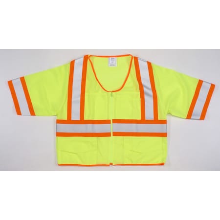 High Visibility Polyester ANSI Class, PK2, Polyester, Orange, Size Large