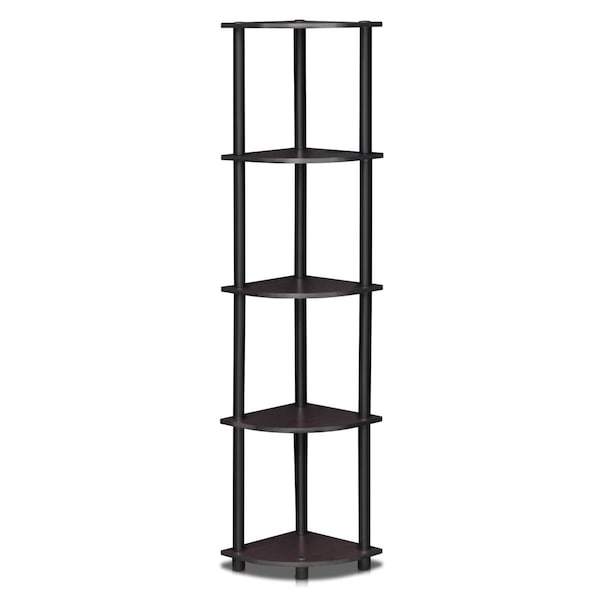 Turn-N-Tube 5 Tier Corner Display Rack Multipurpose Shelving Unit, Dark Walnut
