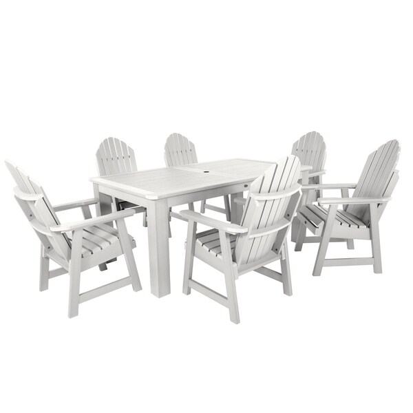 With its coastal-inspired beach feel, the Hamilton Poly Outdoor Patio Dining Set is truly a design icon. Combining timeless styling, comfort, and functionality, it is part of the highwood Adirondack collection. The Hamilton dining set is skillfully crafted to provide sanctuary in a variety of settings. This set your guests will covet. Dining separates can also be purchased to expand your set further. The high-grade poly lumber used in this product offers the realistic look of natural wood without the headaches of maintaining or replacing every few seasons.