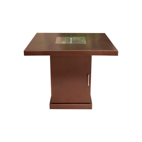 Hiland fire pit gsf-pr-pc propane 40000 btu square bronze features: hammered bronze 40,000 btu's 24" tall tabletop size: 30" x 30" burner size: 10" x 10" stainless steel lid included csa regulator and hose included fireglass included easy access propane tank door