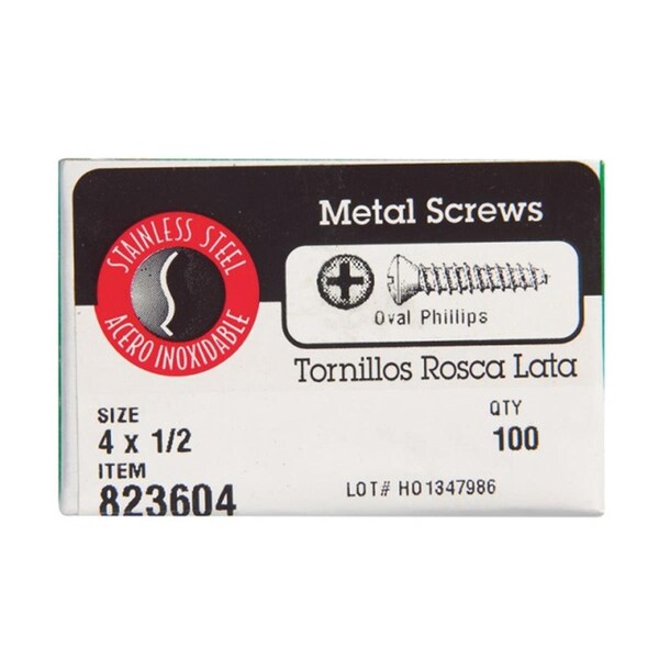 0823604 4 x 0.5 in. Sheet Metal Screw Oval Head Phillips