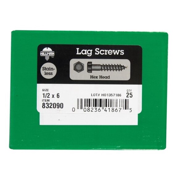 0832090 0.5 x 6 in. Stainless Steel Lag Bolt