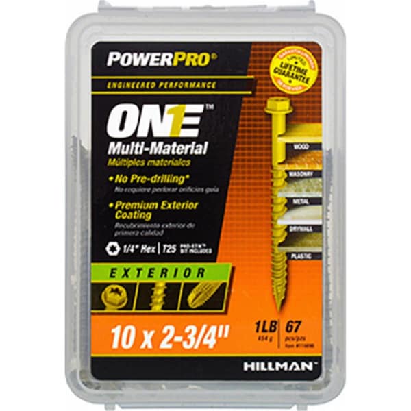 Features -Premium Bronze Epoxy Coating is recommended for exterior projects and treated lumber -Hex Washer Head design with star drive is ideal for high drive torque large bearing surface electrical wood metal and concrete/masonry applications -Patented design with spiral flutes serrated hi-lo thread and 3-sided pyramid point no pre-drilling is required in wood drywall plastic and metal up to 20 gauge -Bit included in pack provides stable driving no wobbling -Pack of 65 Specifications - Finish: Bronze Epoxy Coated - Size: 10 x 2.75in - Country of Origin: Taiwan - Weight: 6.03 lbs