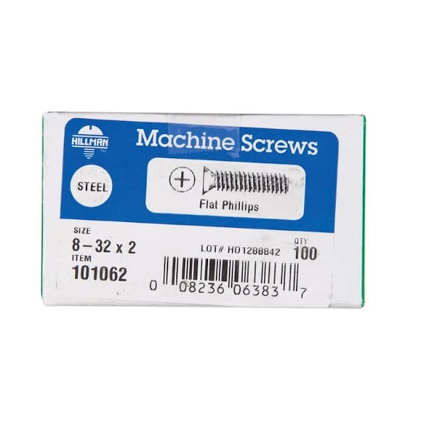 101062 8-32 x 2 in. Phillips Flat Head Zinc Plated Steel Machine Screw