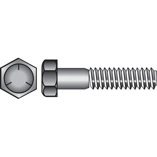 Features -Sub Brand: Hillman -Finish: Heat Treated Zinc -Material: Steel -Thread Type: Coarse -Product Type: Hex Head Cap Screw -Head Diameter: 1/4 in. -Length: 3-1/2 in. -Number in Package: 100 box -Grade: 5 Grade -Inch/Metric: Inch -Threaded: Yes -Head Diameter - Pitch: 1/4