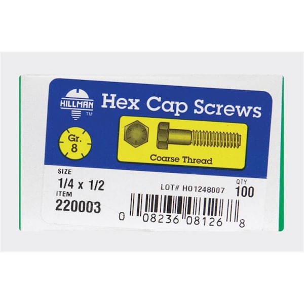 220003 0.25 x 0.5 in. NC-Y Grade 8 Hex Head Cap Bolt