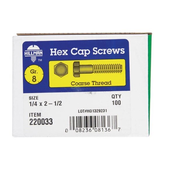 220033 0.25 x 2.5 in. Coarse Thread Hex Head Cap Screw