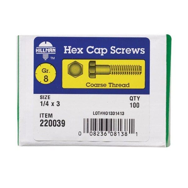 220039 0.25 x 3 in. Grade 8 Hex Cap Screw - Zinc Dichromate