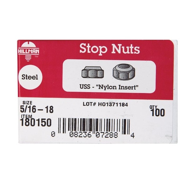 Zinc-plated nylon stop nuts resist corrosion to help ensure your project is done right. Compressible nylon inserts bind the nuts to eliminate the need for lock washers and prevent loosening due to vibration.
