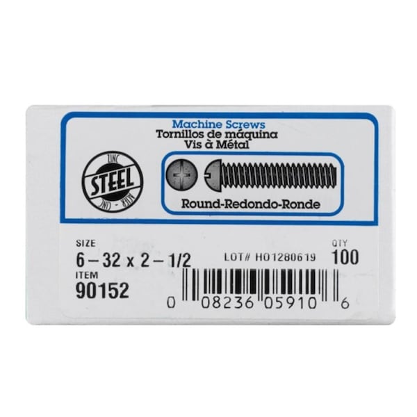 #6-32 x 2-1/2 in Combination Phillips/Slotted Round Machine Screw, Zinc Plated Steel