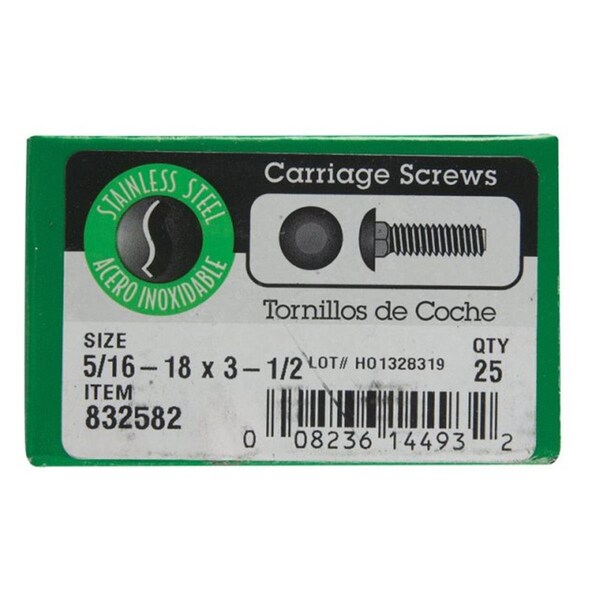 832582 0.312 x 3.5 in. Stainless Steel Carriage Bolt