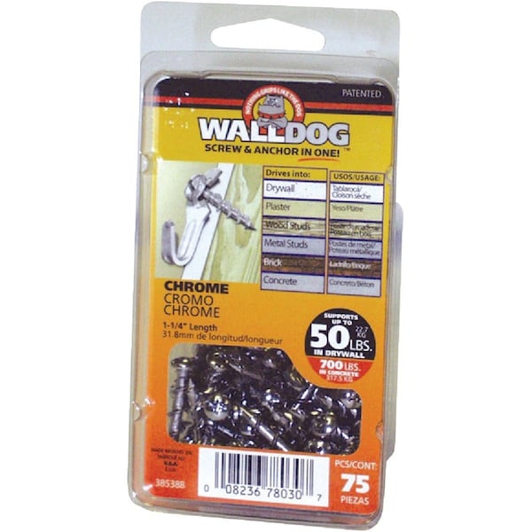 Borefast 1-1/2'' Chrome Anchor & Screw in One, 75-Count