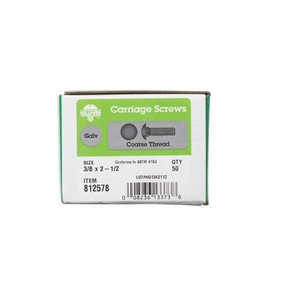 - 3/8" x 2-1/2"Hot dip galvanized Steel round headSquare neckCoarse threadBoxed