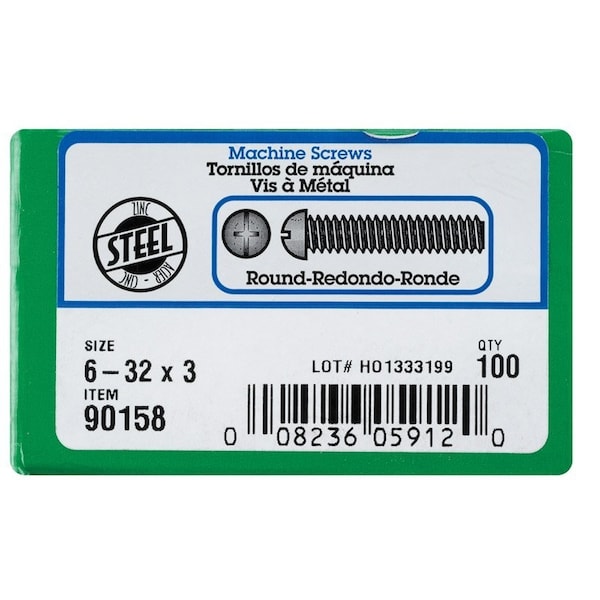 Zinc, round-head, combo-drive machine screws have a machine-cut thread throughout the length of their shank. Fasten with either a Phillips or slot screwdriver to reduce risk of over-tightening and protect the screw and fastened material. If nuts are needed, use with nuts of the same finish and threading for proper fit. Use for any indoor or outdoor projects. #6-32 coarse thread x 3'' length. *