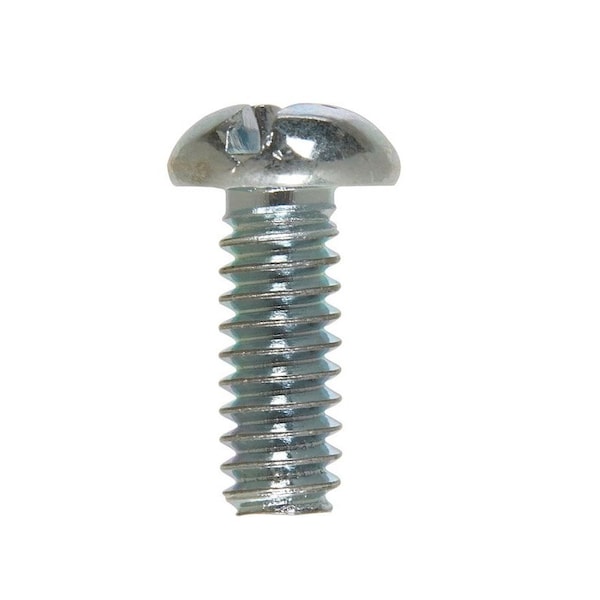 Zinc, round-head, combo-drive machine screws have a machine-cut thread throughout the length of their shank. Fasten with either a Phillips or slot screwdriver to reduce risk of over-tightening and protect the screw and fastened material. If nuts are needed, use with nuts of the same finish and threading for proper fit. Use for any indoor or outdoor projects. #10-24 coarse thread x 1/2'' length. *