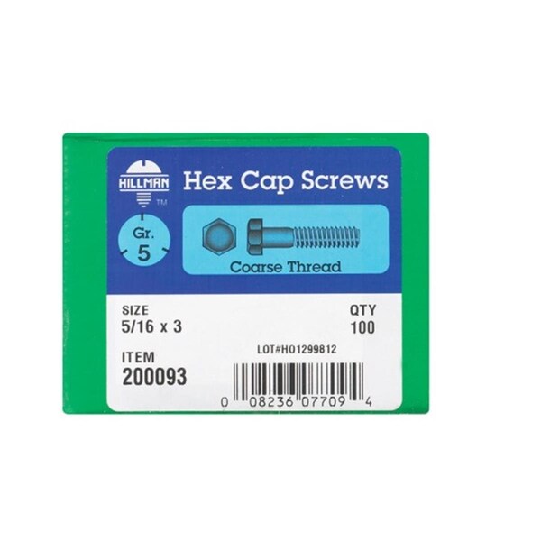 Grade 5, Hex Head Cap Screw, Steel, 3 in L, 5 PK