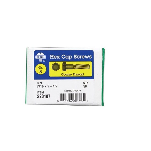Grade 8, Hex Head Cap Screw, Steel, 2-1/2 in L
