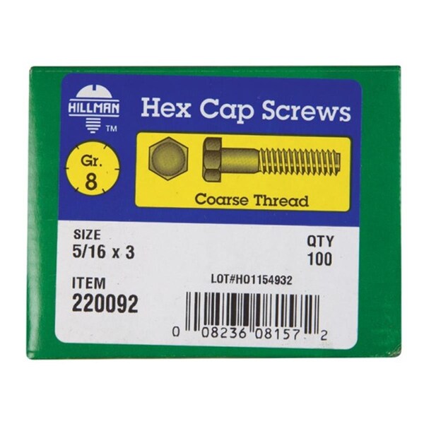 Grade 8, Hex Head Cap Screw, Zinc Plated Steel, 3 in L