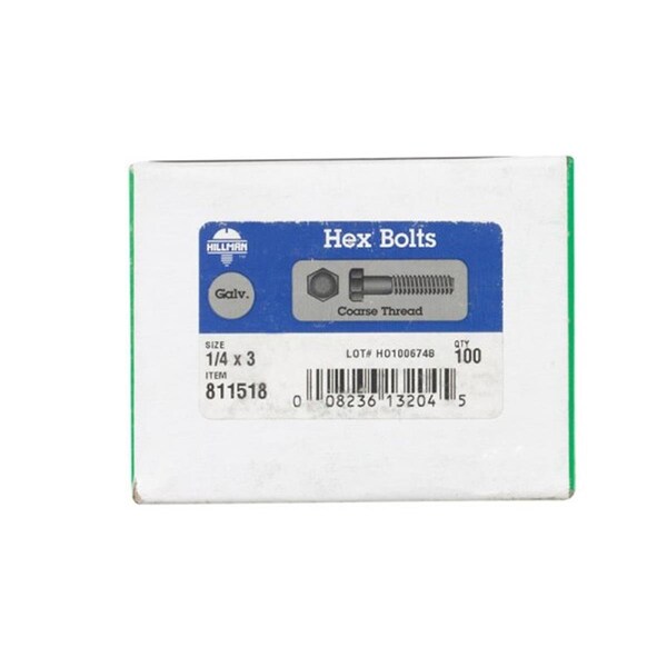 Hex Head Cap Screw, Galvanized Stainless Steel, 3 in L