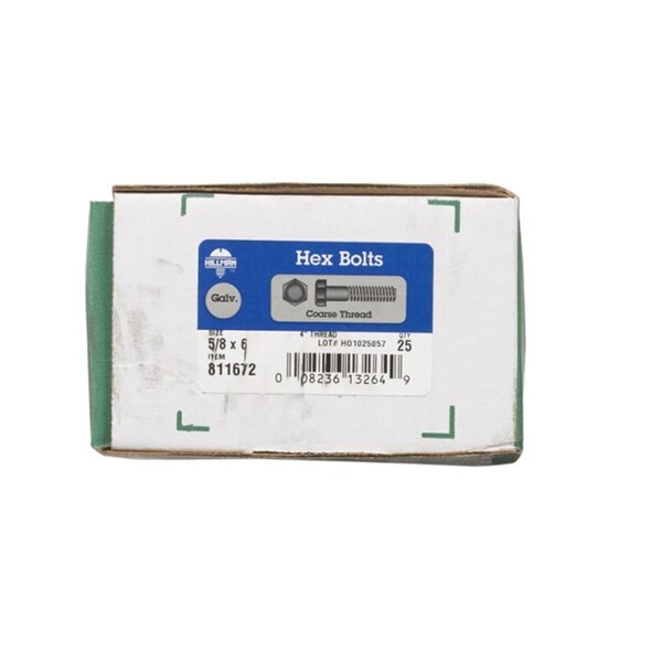 Hex Head Cap Screw, Hot Dipped Galvanized Steel, 6 in L
