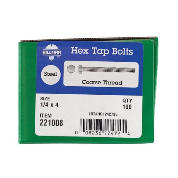 Hex Head Tap Bolt, 4 in L, 100 PK