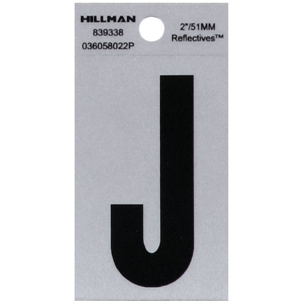 Simple and classic, this Hillman adhesive letter J black and silver reflective (2 in.) is perfect for use on a mailbox or your home. The sturdy construction stands up to weather. These house numbers are a great way to help make your address more visible to visitors and emergency workers alike.