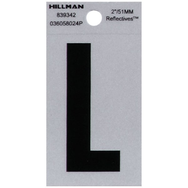 HILLMAN 2 in. Reflective Black Vinyl Self-Adhesive Letter L 1 pc, PK6