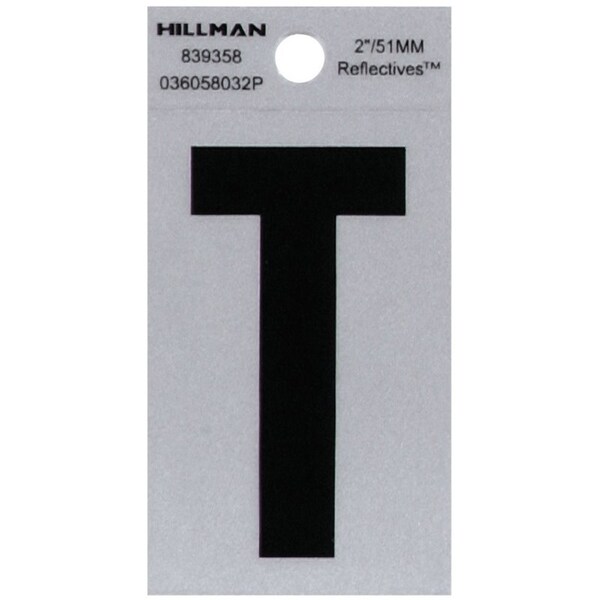 HILLMAN 2 in. Reflective Black Vinyl Self-Adhesive Letter T 1 pc, PK6