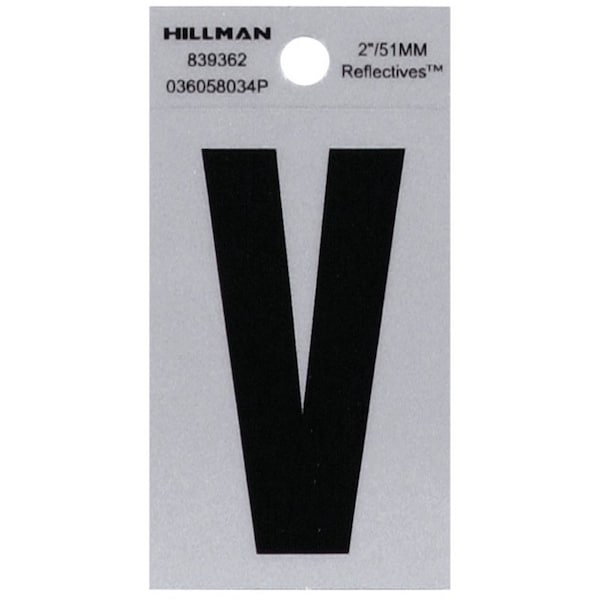 Simple and classic, this Hillman adhesive letter V black and silver reflective (2 in.) is perfect for use on a mailbox or your home. The sturdy construction stands up to weather. These house numbers are a great way to help make your address more visible to visitors and emergency workers alike.