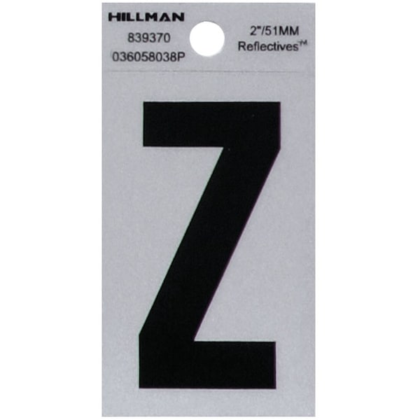 HILLMAN 2 in. Reflective Black Vinyl Self-Adhesive Letter Z 1 pc, PK6