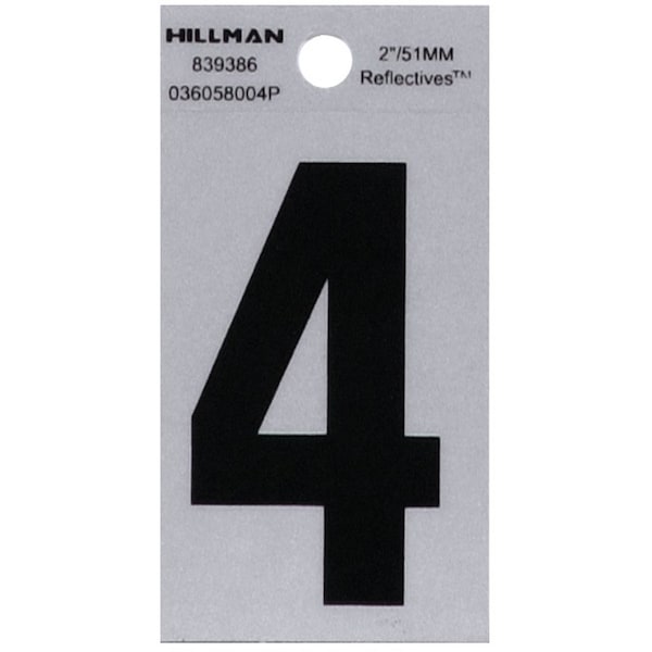 HILLMAN 2 in. Reflective Black Vinyl Self-Adhesive Number 4 1 pc, PK6