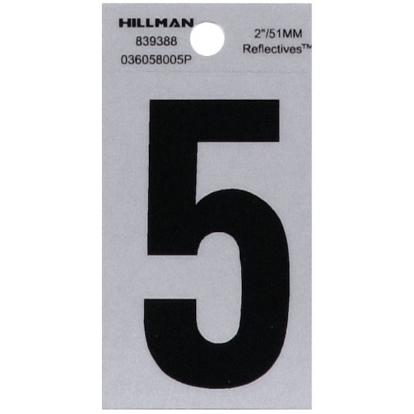 HILLMAN 2 in. Reflective Black Vinyl Self-Adhesive Number 5 1 pc, PK6