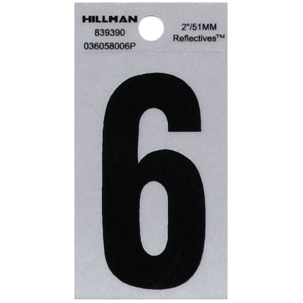 HILLMAN 2 in. Reflective Black Vinyl Self-Adhesive Number 6 1 pc