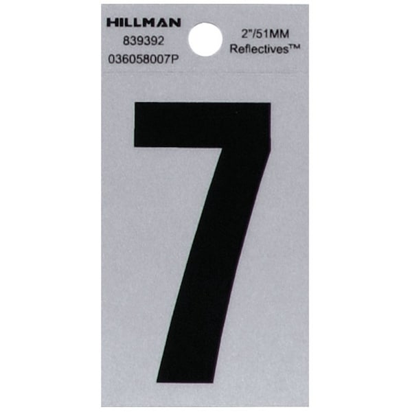 HILLMAN 2 in. Reflective Black Vinyl Self-Adhesive Number 7 1 pc, PK6